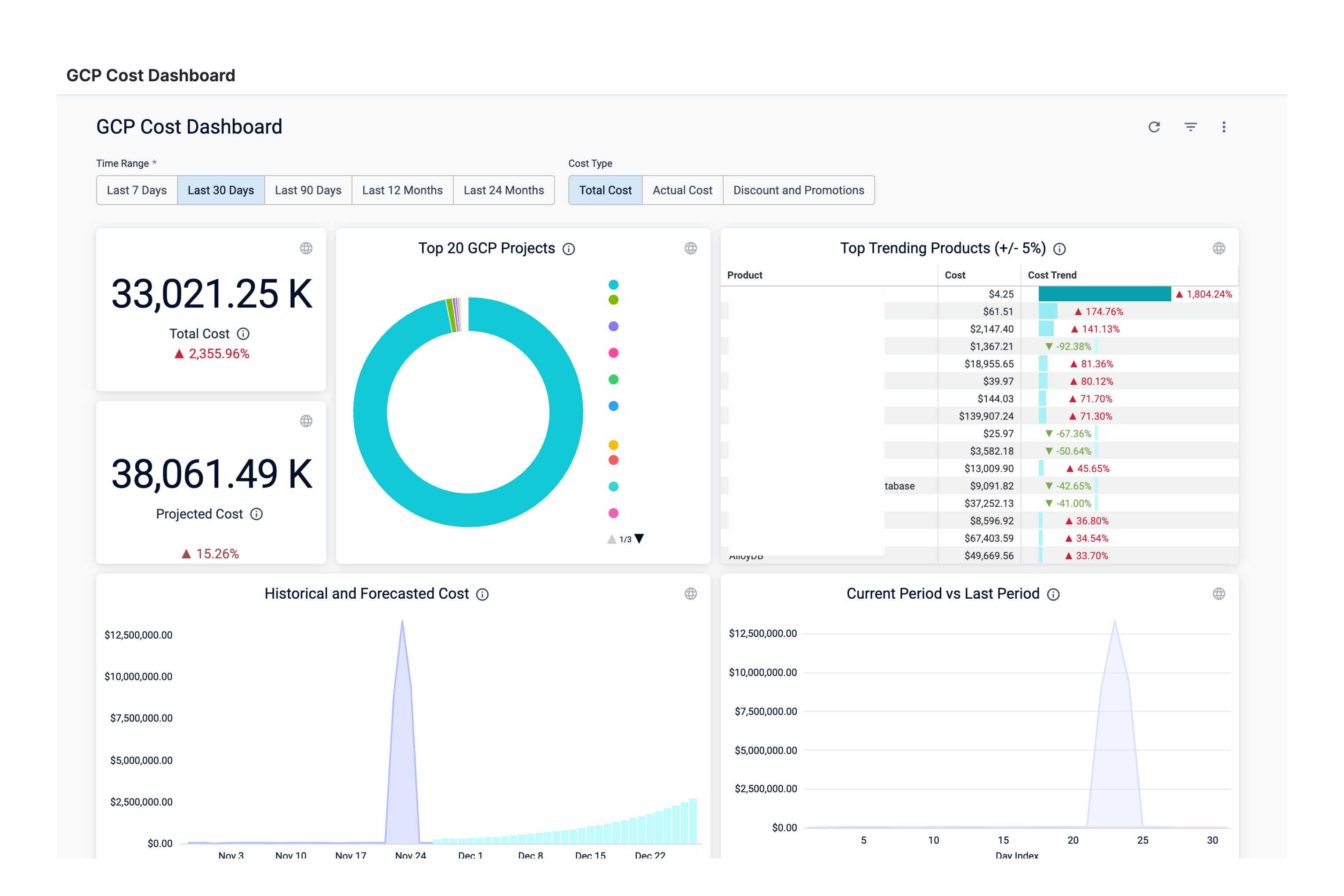 | Top Cost Trend by Products | The top GCP products by cost increase or decrease. |
