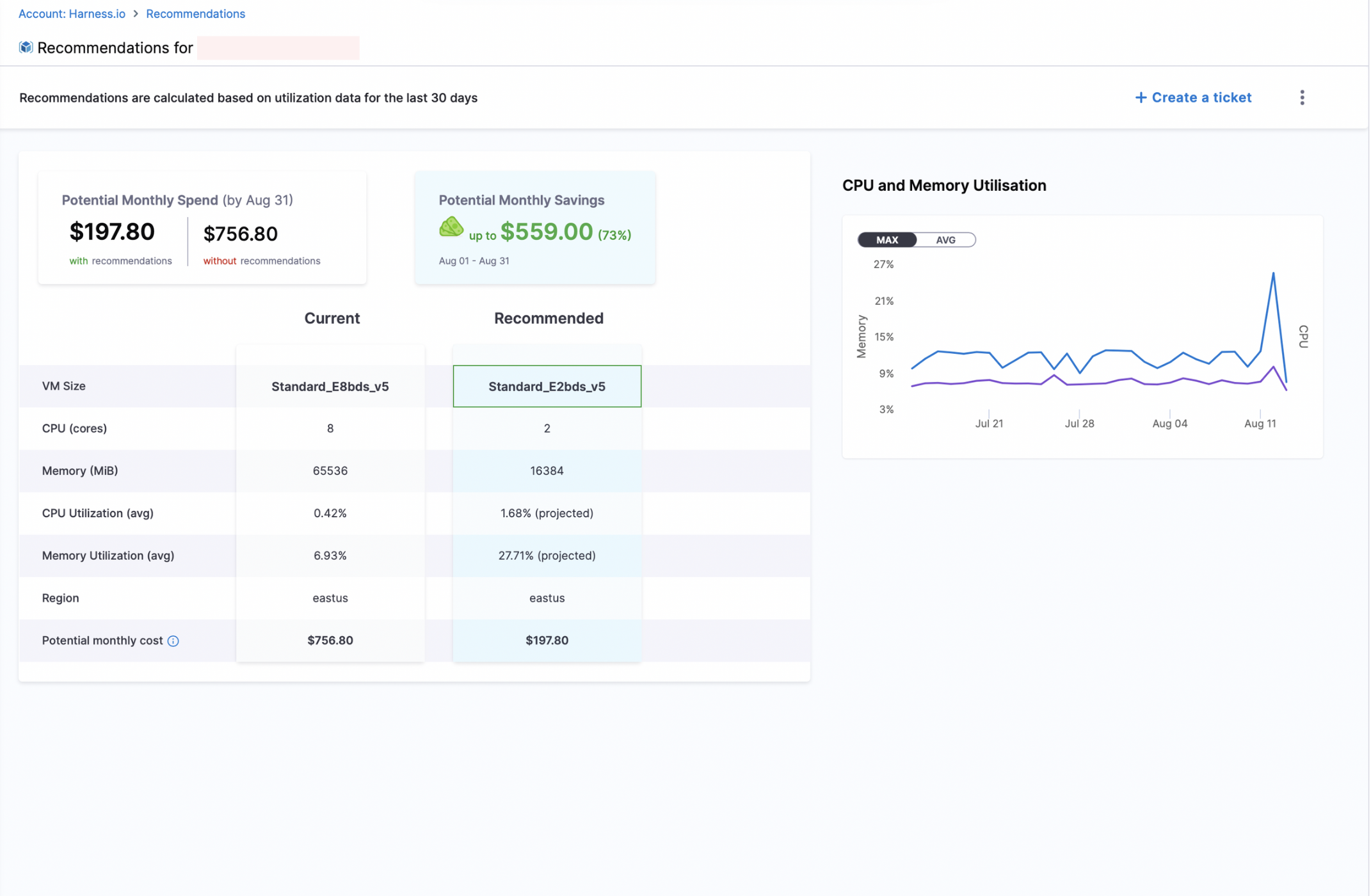 Harness CCM provides two types of recommendations to optimize your VMs:
