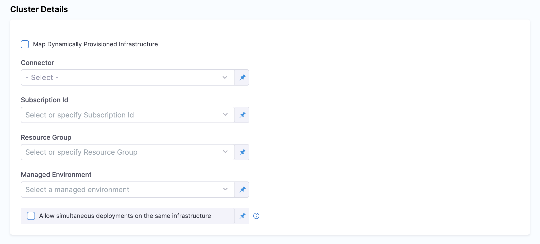 This optional checkbox enables multiple deployments to run concurrently on the same managed environment. When enabled, Harness allows parallel deployments without waiting for previous deployments to complete. This is useful for deploying multiple independent container apps to the same environment or for accelerating deployment workflows.