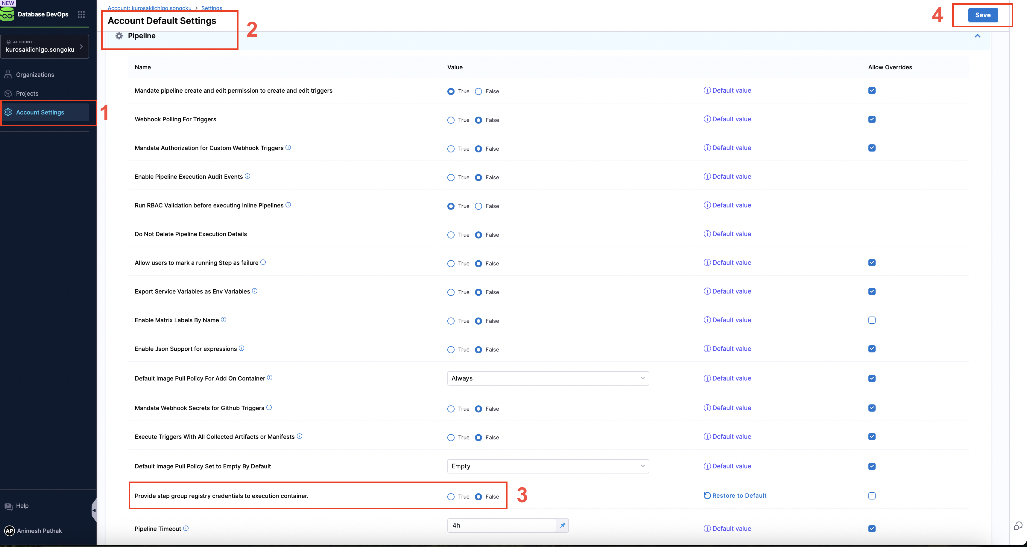 3. Select the value False for Provide step group registry credentials to execution container. (Default value is True)