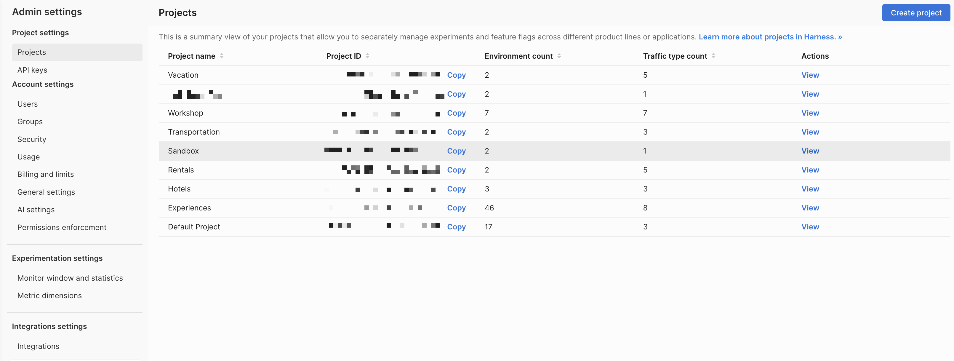 When you first create your account, you are provided with two environments. To manage your environments, go to the Projects tab in your Admin settings page. Select the project that you want to edit environments for. You can: