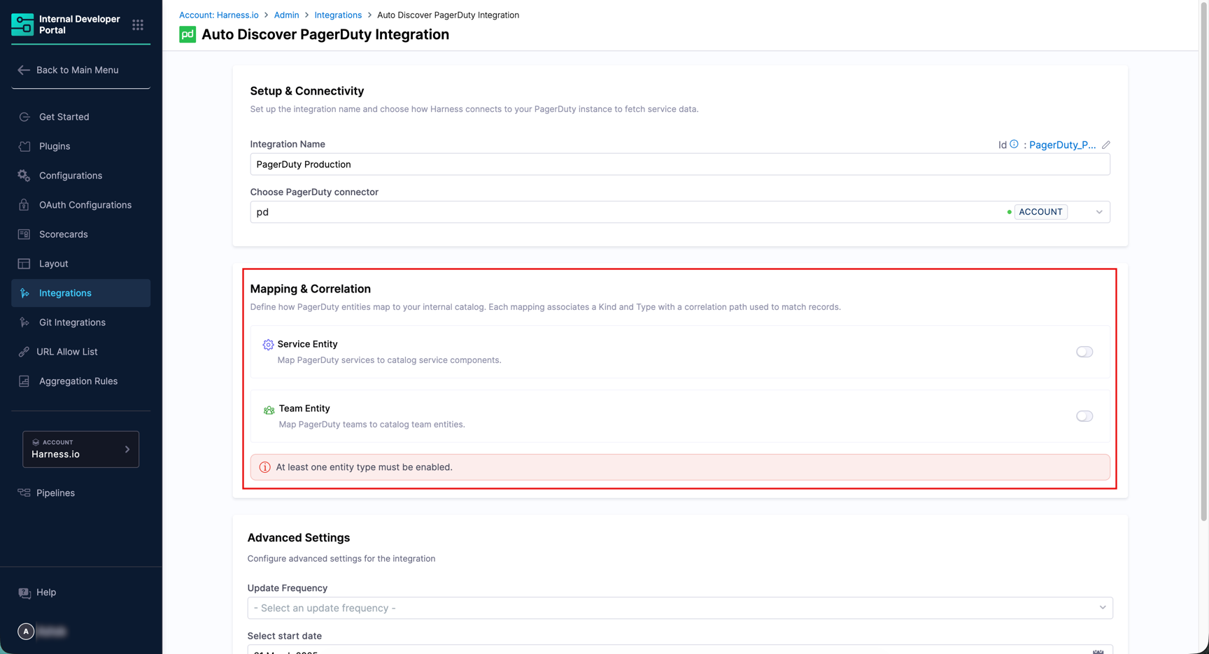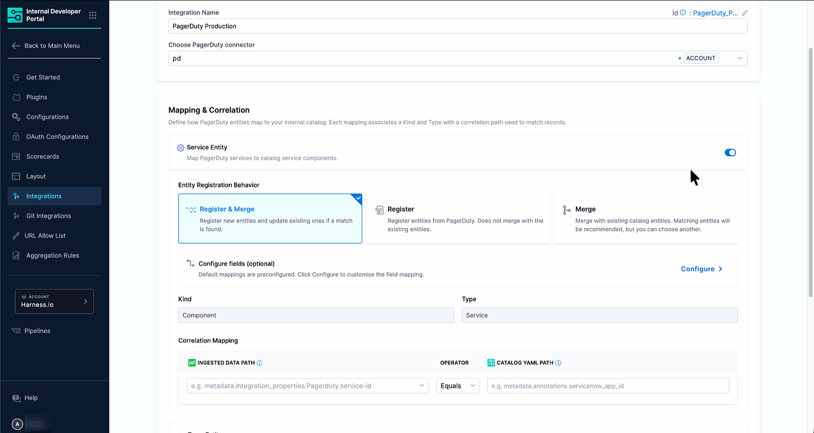 This section connects Harness IDP to your PagerDuty account.