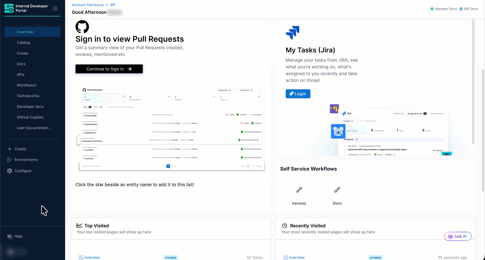 In Harness, open the Internal Developer Portal.