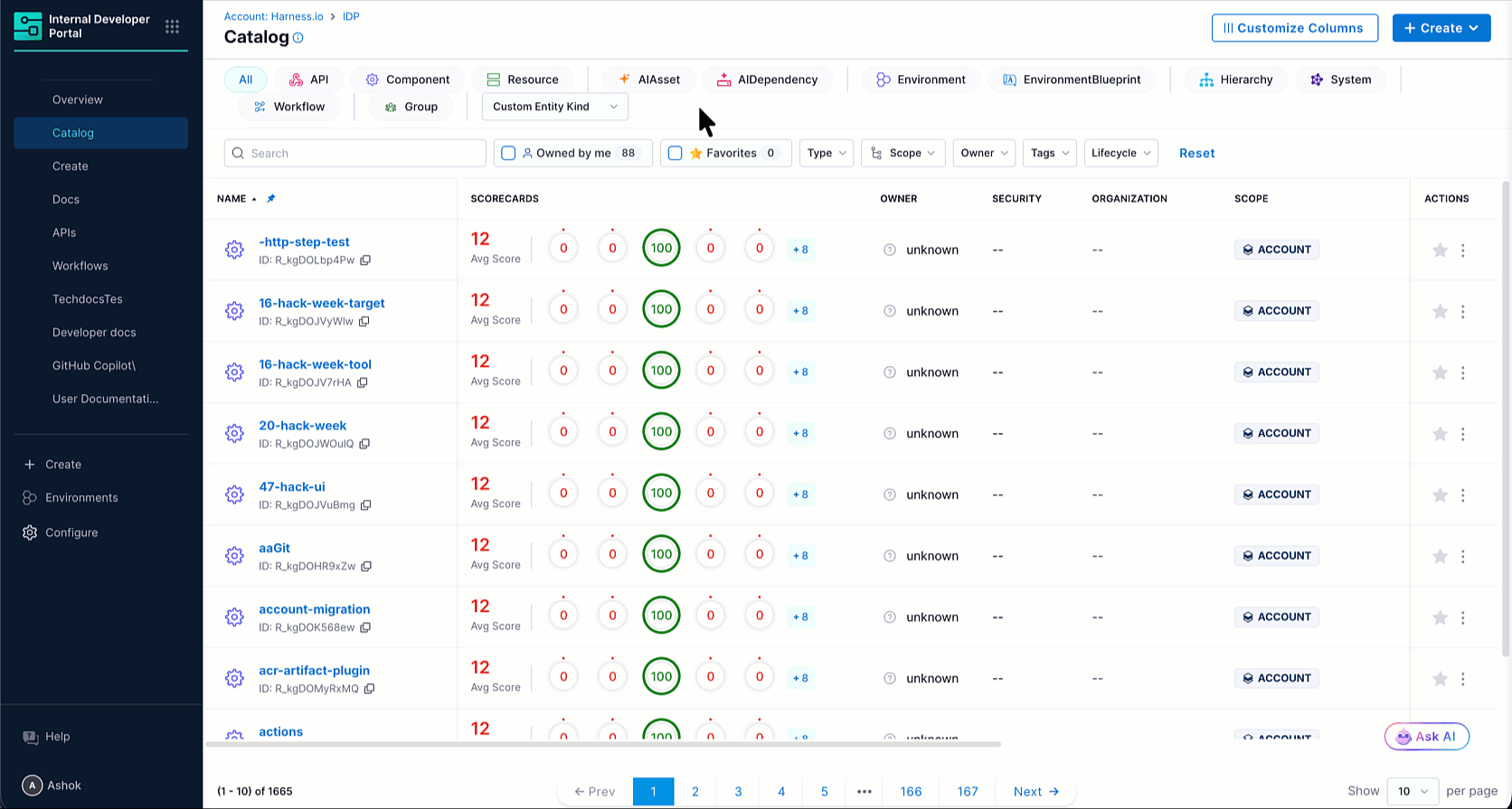 Once you create a custom kind and register entities of that kind, they are available across IDP the same way built-in kind entities are. In short, if a feature works for Component or API, it works for your custom kind too.