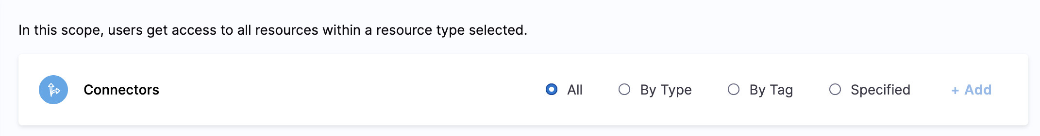 By Tag: Grants access to connectors based on matching tags. If a connector has a tag included in the resource group's tag list, users with the corresponding role assignments automatically gain access. This is currently behind the