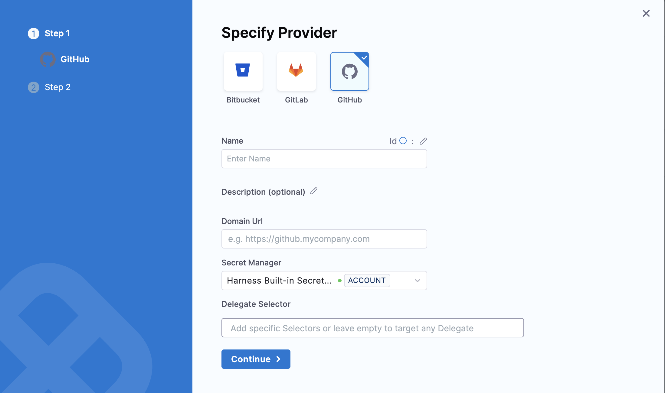 - Specify the Secret Manager. This is where the token related to GitHub Enterprise will be stored.