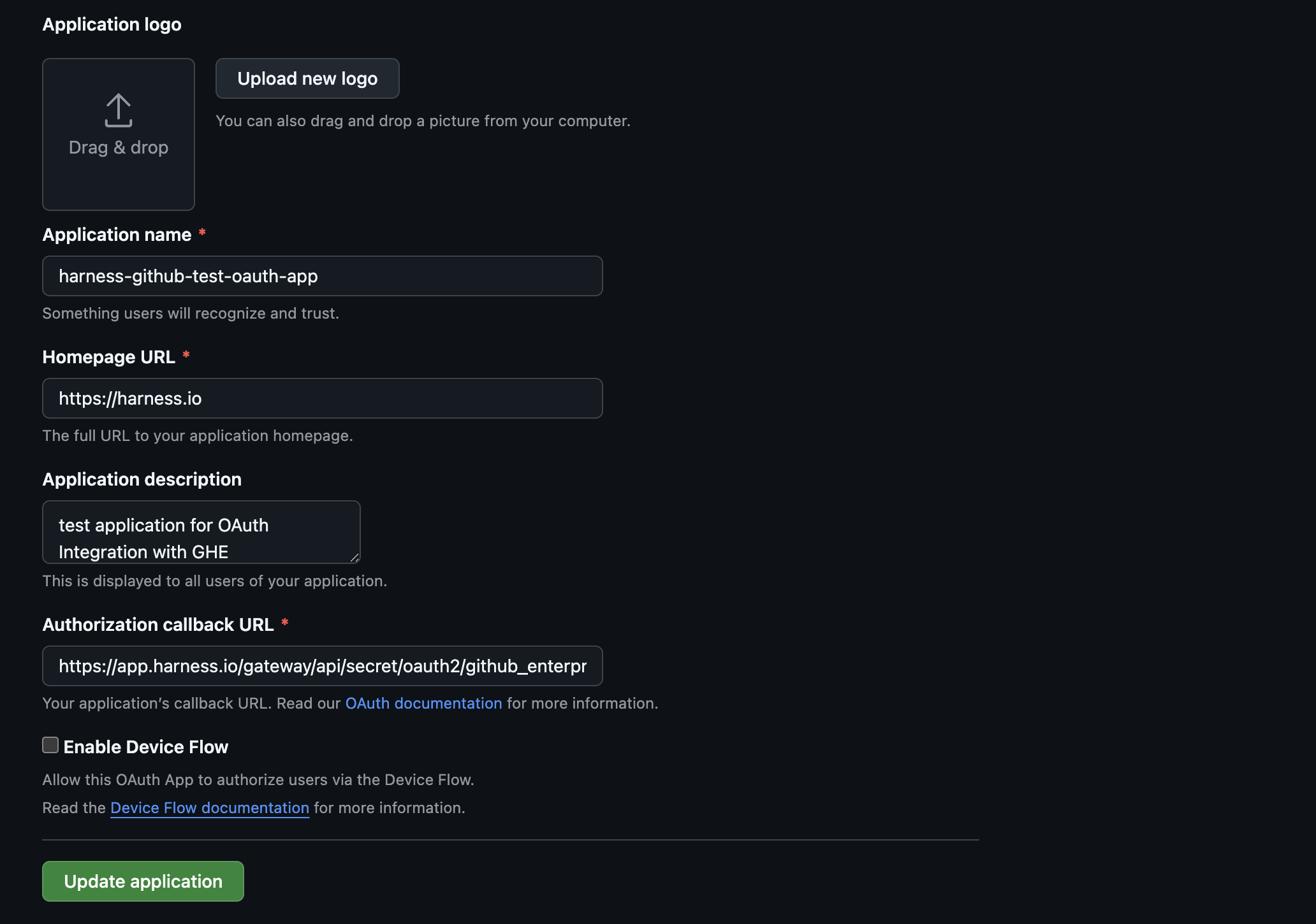 Harness supports OAuth integration for GitHub Enterprise. As a prerequisite, you need to create an OAuth App in your GitHub Enterprise instance.