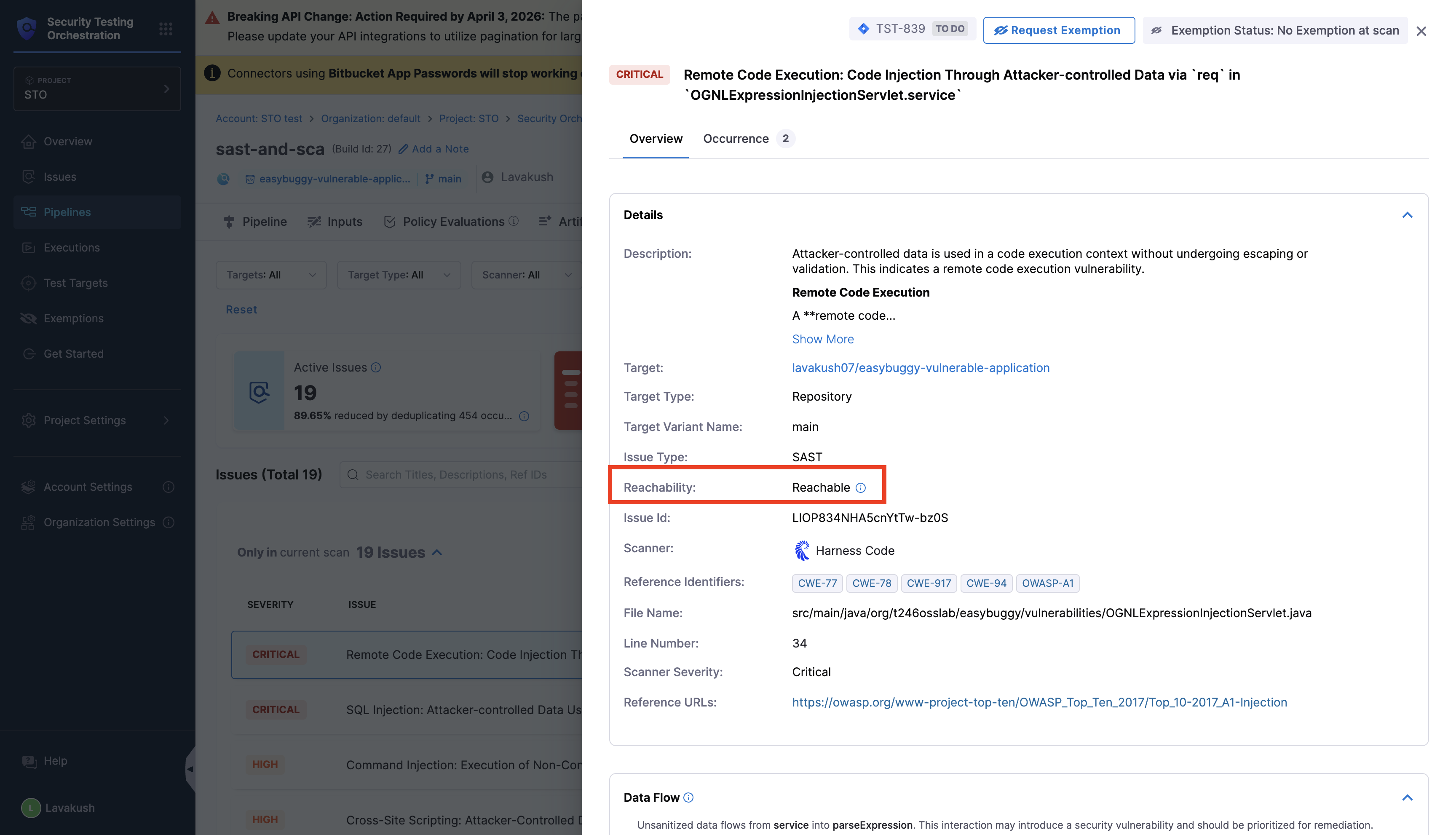 You can view the Dataflow for each of the occurrences of a security issue in the Vulnerabilities page.