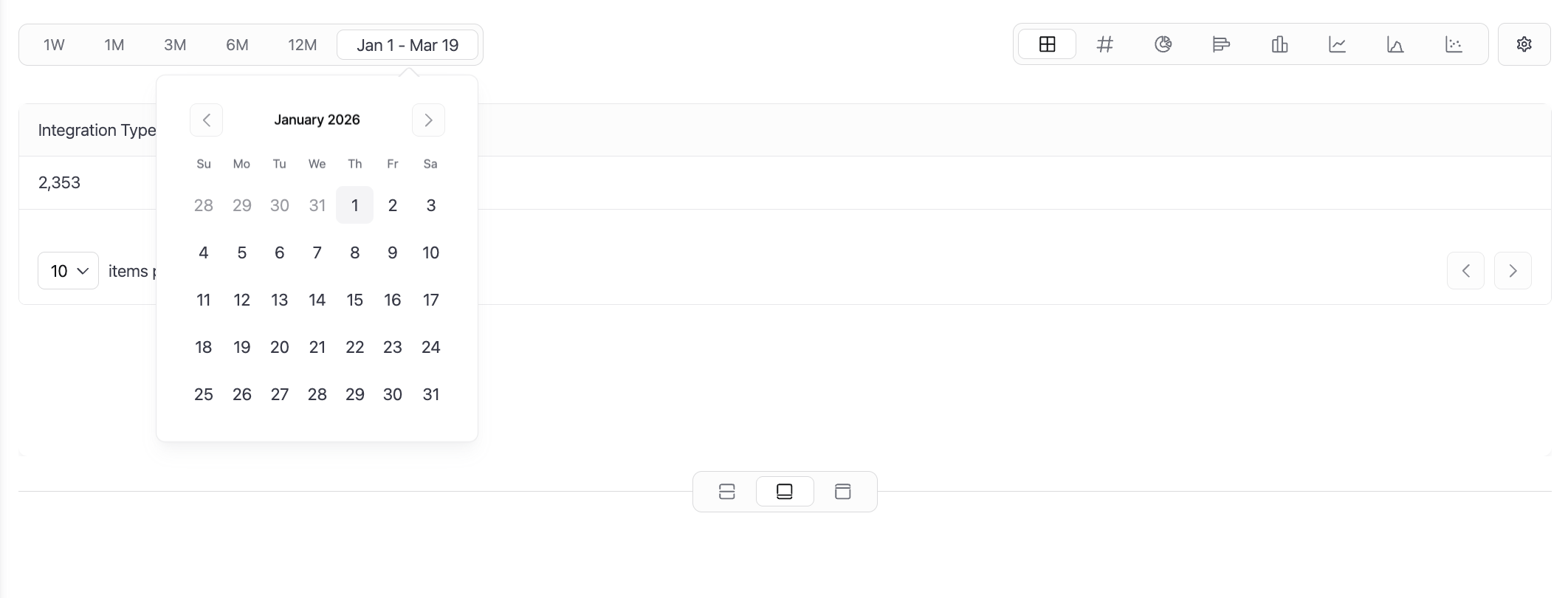 You can also select pre-defined time ranges above the widget visualization (such as 1W, 1M, 3M, 6M, or 12M) or define a custom date range.