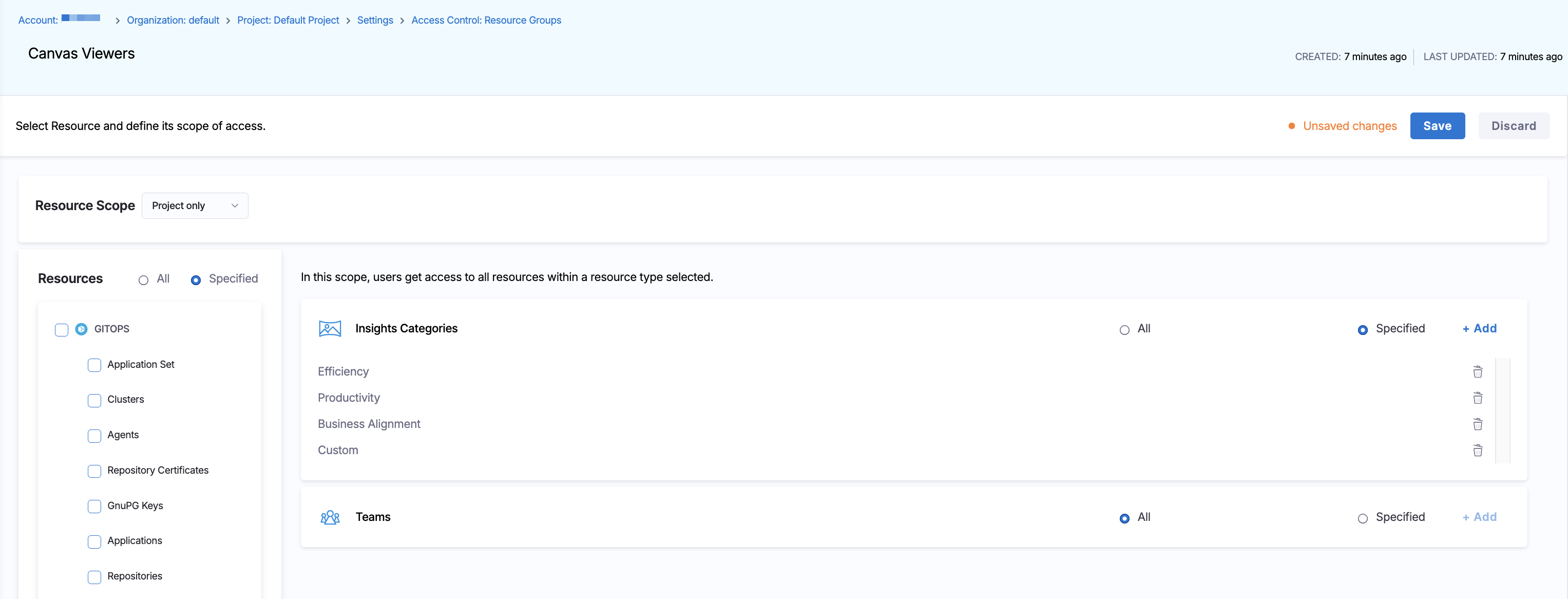 Access to Canvas dashboards is also scoped through Harness resource groups.